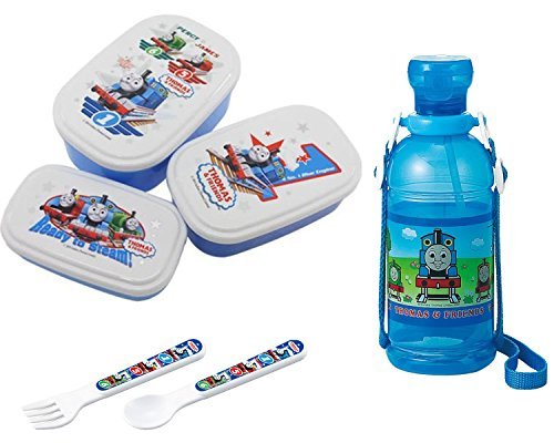 Children's Water Bottle, Three Lunch Boxe Set with Spoon and Fork - Everything Has Thomas and Friends Markings [並行輸入品]