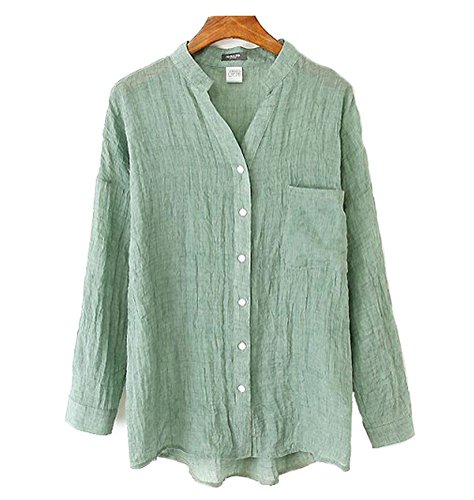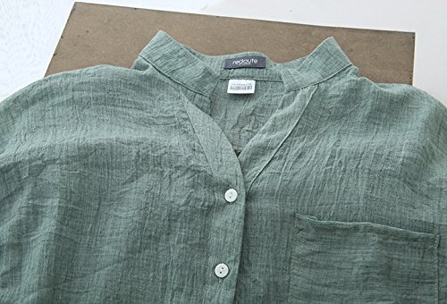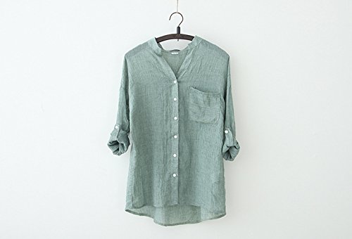 - 落ち着いた大人カジュアルなおしゃれが完成する、麻風洗いざらしの風合いと透け感が魅力的なアースカラーシャツ。一番上にボタンのないV字の襟ぐりでデコルテもスッキリヘルシーな印象に。