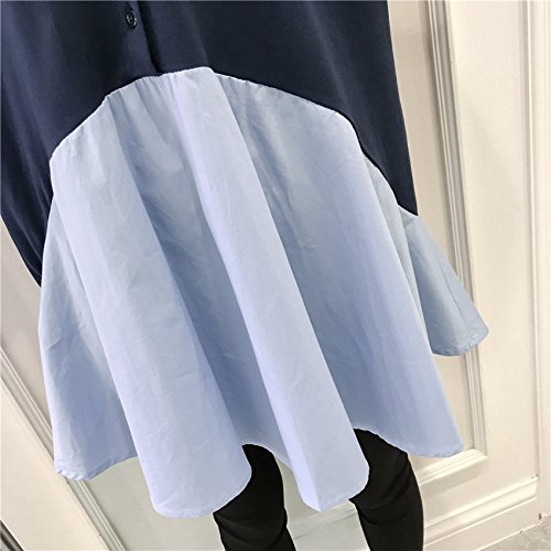- 急なお呼ばれやお出かけにも最適な異素材MIXの珍しいシャツ切替ドルマンチュニックワンピース。ボタンダウンでフォーマルな印象を放ちつつも、カーディガンに見立てた紺色部分はふんわり柔らかニット素材なので動きやすくストレスフリー。どんどん大きくなる胸やお腹、ゆったり着たいけど、可愛い服がなかった、、、そんな妊婦さんにもオススメの一品です!