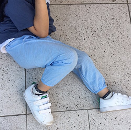 - 一度穿いたらクセになる、ふんわり柔かな着心地のキッズ用9分丈スウェットジョガーパンツ。たくさん空気を取り込み保温性に長ける一方、沢山動き回るお子様に相応しくムシムシしない通気性ある薄手のコットンガーゼ仕様です。ウエスト深め・ピチピチしない適度なゆったりロングパンツなので窮屈感がなく、とにかく動きやすい!ウエストはゴム仕様なので一人お着替えも簡単ラクチン!未就学児のおトイレや保育園でのお着替え着脱もスムーズに★お子様も自信がつきます★