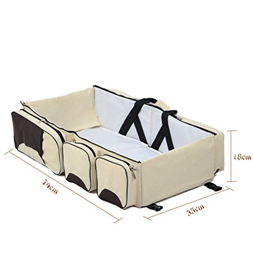 OUNONA 折り畳み式ベビーベッド ベビー連れの旅行&外出などに 大容量マザーズバッグ (クリーミーホワイト)