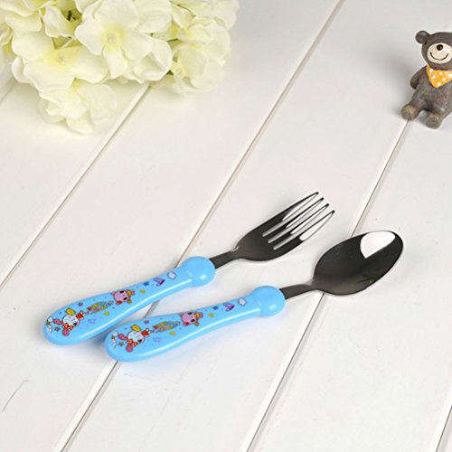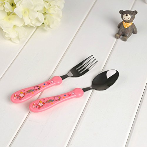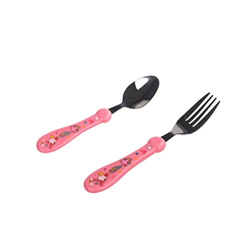 1 x子供のステンレス鋼製の銀製食器を設定スプーンとフォーク幼児カトゥーンハンドル(ピンク)