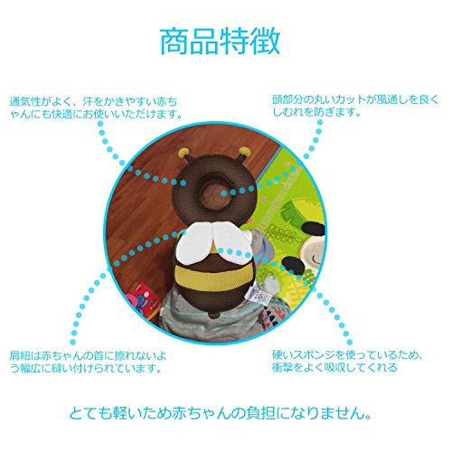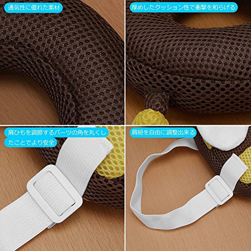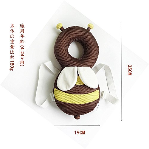 OUTERDO 赤ちゃん転倒防止リュック 頭ガード 室内用リュック 乳幼児用 ベビー 転倒防止 頭を保護できる 怪我防止 肩紐自由調整 柔らか 可愛いりゅっく 動物柄 (蜂 夏用 35cm) ブラウン