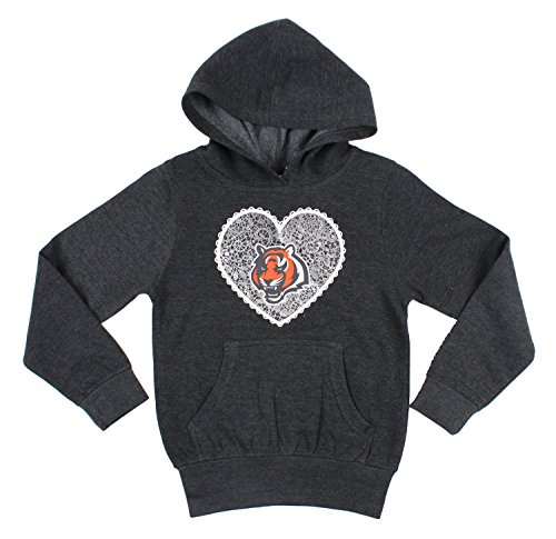 であなたの好きなチームを応援このシンシナティ・ベンガルズNFL BIG Girlsハートフリースパーカーです。それは、大きなハートパッチが前面にチームのロゴを持つが、センターでシルバーのフォイルとスクリーン印刷のグラフィックスを使用しました。また、リブ編み袖口と裾、フロントポーチポケット、とソフトなフリースの裏地で快適です。BIGガールズサイズ。