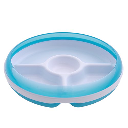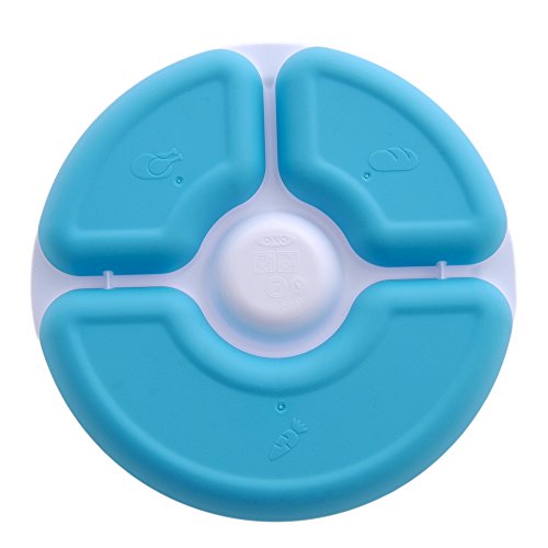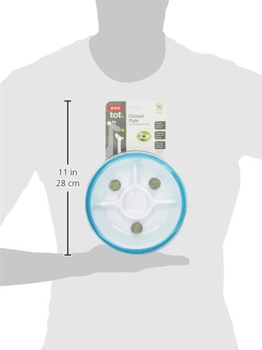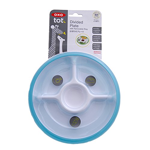 Help keep your child?s food safe in just the right place, in just the right amounts, with the OXO Tot Divided plate. The Plate?s three individual sections take the guesswork out of portion sizes for proteins, vegetables and grains, and give your tot a balanced meal that?s neat and easy to eat. Kids will love the Plate?s center dipping section that invites them to have fun with their favorite condiments and sauces. An outer ring helps peas, pasta and more stay on the plate and guides food into the little ones? utensils. The ring can be removed when tots have mastered self-feeding.
