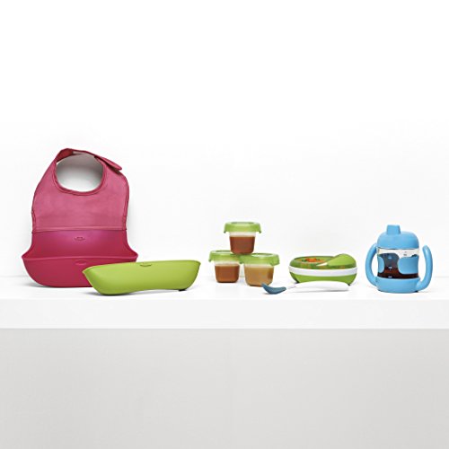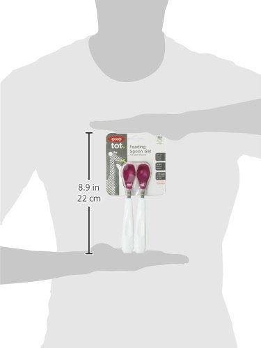 When it?s time for solids, try the OXO Tot Feeding Spoon. Available in sets of two, this Feeding Spoon has a protective food-grade silicone coating which is gentle on baby?s gums and mouth. The soft edges of the silicone can be used to scrape the last bit of sweet potato from the bowl or jar, or to gently wipe apple sauce from baby?s face. The shallow Spoon prevents feeding baby too much food at once. A contoured handle is comfortable to hold and angled for easy feeding.