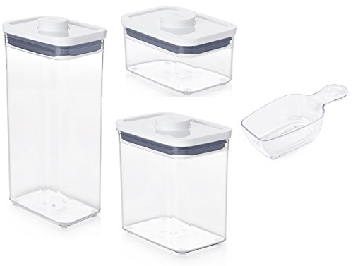 OXO 保存容器 プラスチック ポップコンテナ2 レクタングル 新タイプ 3ピースセット スクープ付 11241400