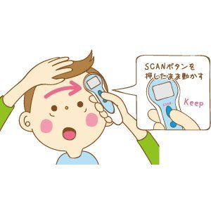おでこで測る体温計です。 測定時間は約1秒!おでこの端から端をすーっとなぞるだけの、スピード測定です。 シンプルな設計なので、カンタンにお使いいただけます。