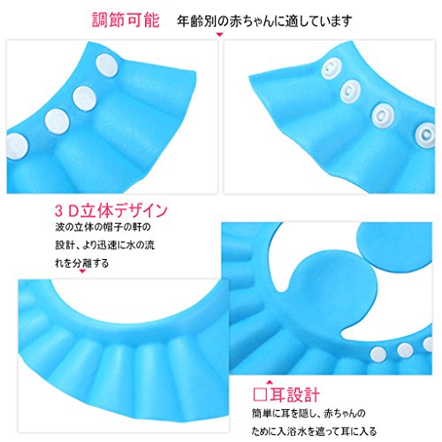 OYAN シャンプーハット 子供 シャンプーキャップ シャワー 洗髪用帽子お風呂 樹脂 サイズ 調整可能 防水帽 ブルー