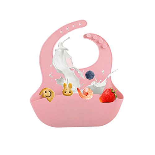 OYAN よだれ掛け ベビー 赤ちゃん 幼児 エプロン ビブ 可愛い 柔らかくて軽量 シリコン製 食事 片付け (2個色) (ピンク)