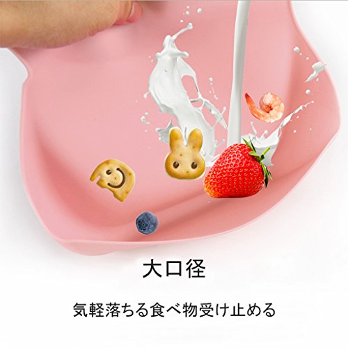 - 食べこぼしをキャッチするポケット付きで、ケーキや思わず落としてしまった大きな食べ物もしっかりキャッチ!