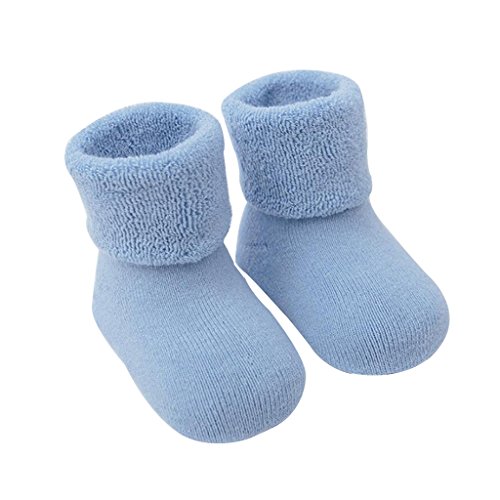 OYAN 赤ちゃん 靴下 ベビー ソックス新生児 子供たち 可愛い ども用 厚手 秋冬 滑り止め 男の子 女の子 2色 1足組 (青, 0-1歳)