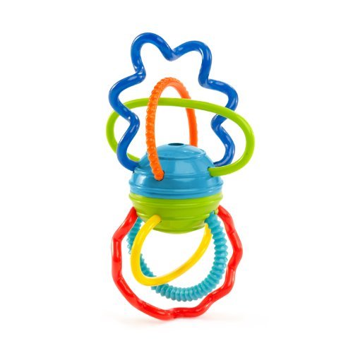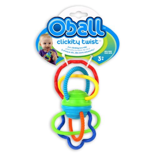 Hand held entertainment with bright colors, soft teethable spirals, and fun clicking sounds. The clickity twist features soft, flexible arms that are great for teething and are easy for baby to grasp and hold.