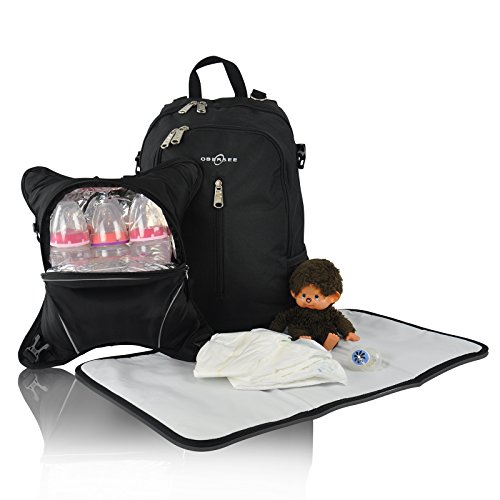 Features detachable insulated bottle cooler for up to three baby bottles or snacks;Changing mat included;Adjustable breathable mesh padded straps and padded back for ultimate comfort;Roomy main compartment features multiple pockets for supplies such as diapers, wet wipes and other baby items;Extra-Large zipper pocket for clothing, laptop pocket, key clip