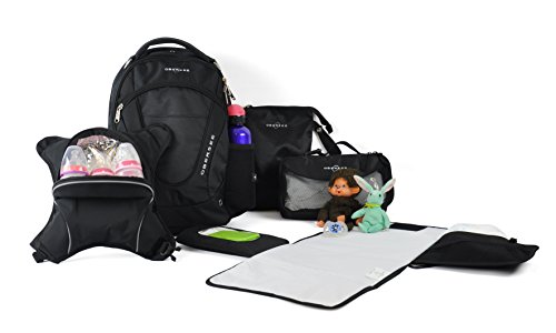 Features detachable insulated bottle cooler for up to three baby bottles or snacks;Includes: Obersee Voila changing mat kit, separate wet pouch and removable clothing cube;Adjustable breathable mesh padded straps and ergonomic, padded back for ultimate comfort;Roomy backpack features multiple pockets for supplies such as diapers, wet wipes, other baby items, and mom and dad's personal items;Features pockets for tablet computer and laptop computer (up to 15)