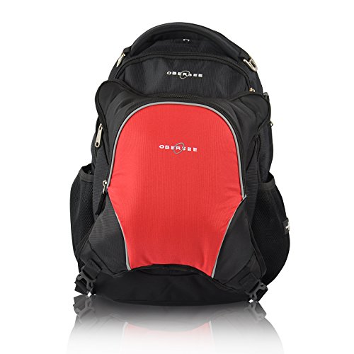 Obersee Oslo Diaper Bag Backpack with Detachable Cooler, Black/Red