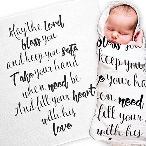 May the Lord Baby Swaddle Blanket by Ocean Drop Designs - Muslin Swaddle Wrap with Scripture Quote for Baby Shower, Christening Gift or Baptism Gift - Receiving Blanket, Privacy Throw - 100% Cotton by Ocean Drop Designs