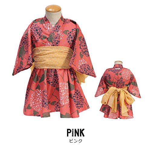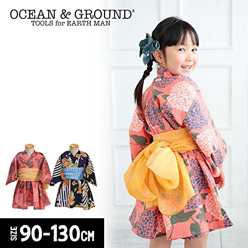 (オーシャンアンドグラウンド)Ocean&Ground 浴衣ワンピース HIMAWARI&AJISAI 130 ピンク