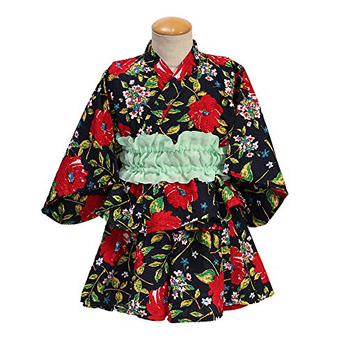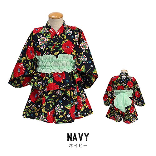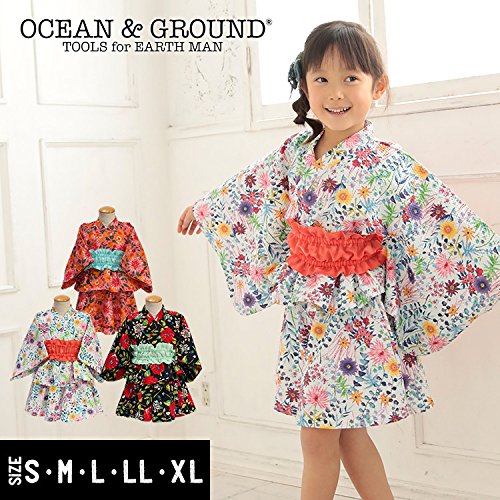 (オーシャンアンドグラウンド)Ocean&Ground GIRL'S浴衣セットアップFLOWER L ネイビー