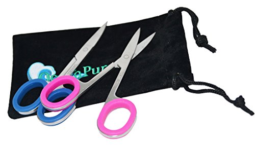OceanPure Curved Tip Rubber Grip Nail Scissors (Pink/Blue Set) by OceanPure