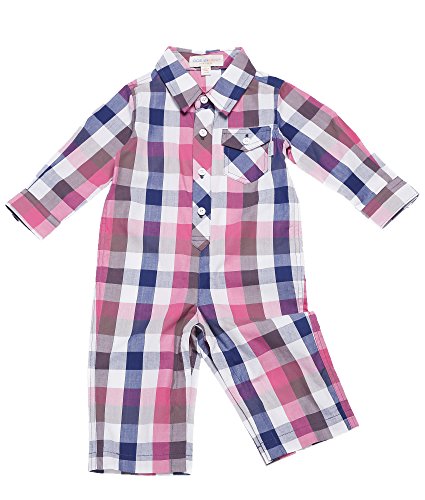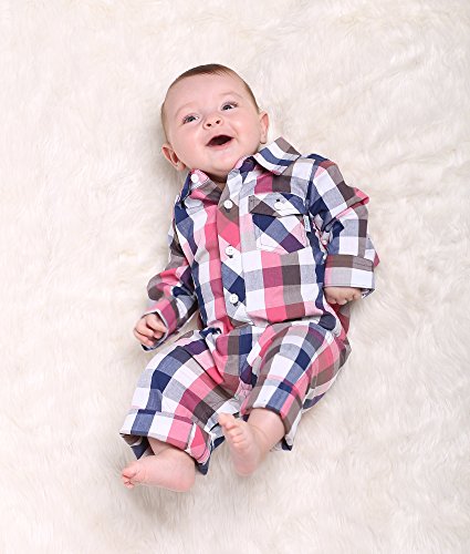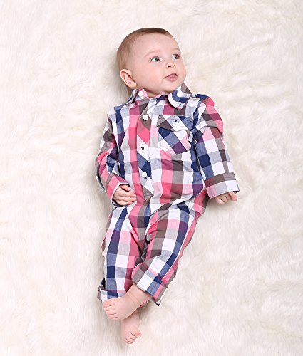 Oceankids ベビーボーイズの赤ちゃんの女の子の幼児のアウターウェアのチェック柄のジャンプスーツ レッド 18-24 ヶ月