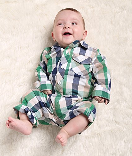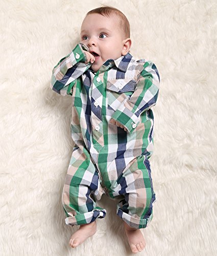 Oceankids ベビーボーイズの赤ちゃんの女の子の幼児のアウターウェアのチェック柄のジャンプスーツ グリーン 12-18 ヶ月