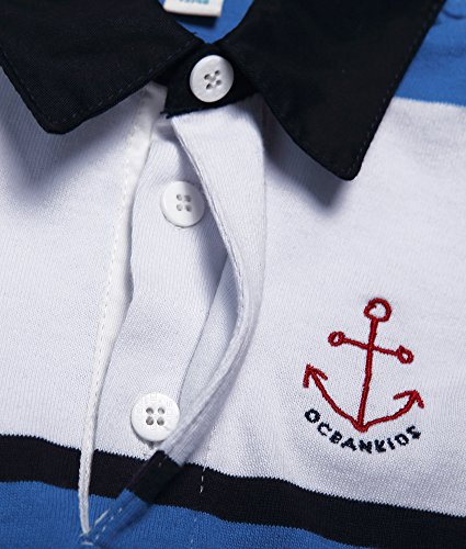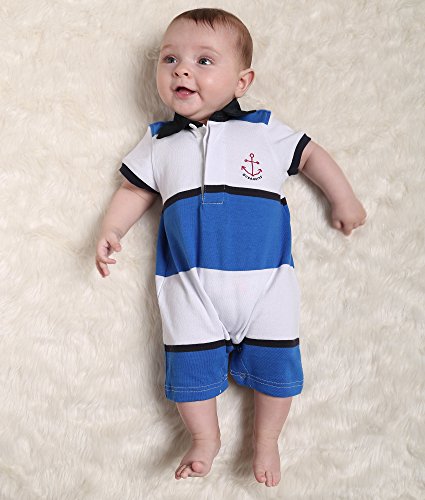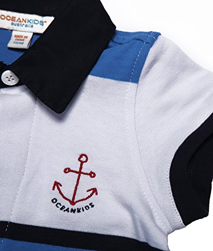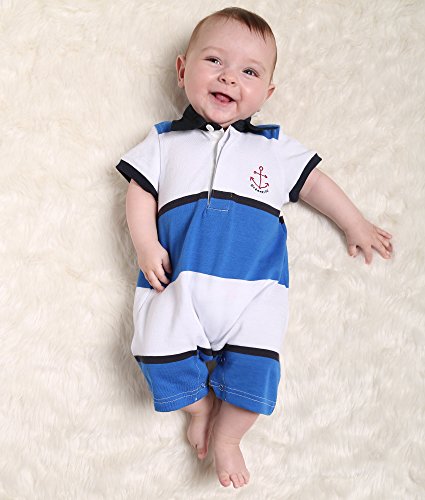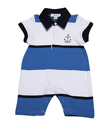 Oceankids 赤ちゃん男の子赤ちゃん女の子赤ちゃんのアウターストライプジャンプスーツ、ポロカラーの青と白 12-18 ヶ月