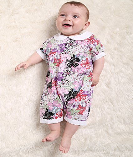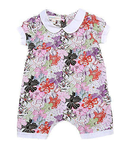 Oceankids 赤ちゃんの少年赤ちゃんの女の子赤ちゃんの幼児のアウターシューズピーターパンカラーと花のジャンプスーツ ピンク 9-12 ヶ月