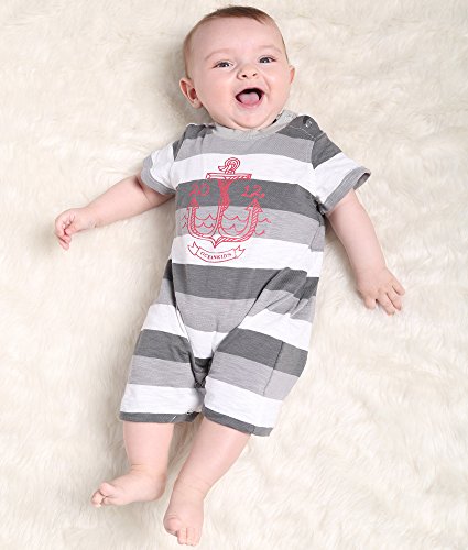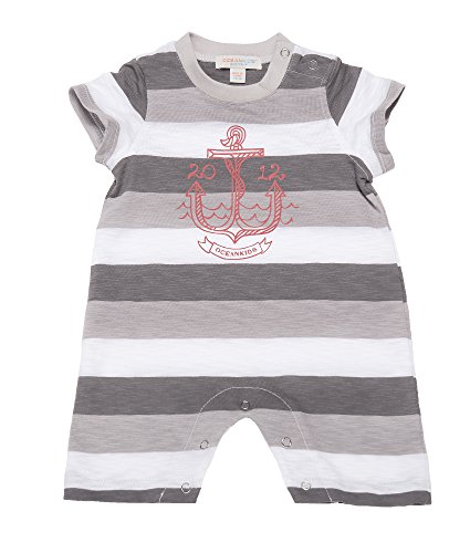 Oceankids 赤ちゃん男の子赤ちゃん女の子赤ちゃんのアウターストライプジャンプスーツ、ポロカラーのグレーとホワイト 6-9 ヶ月