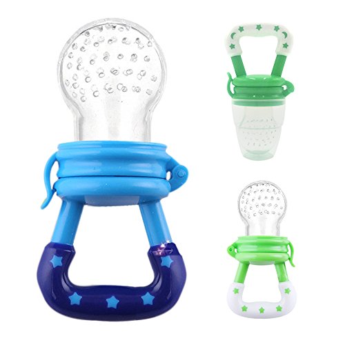 Ochine 乳首 ベビー用品 栄養 野菜 果物 咬み袋 ベービー 赤ちゃん おしゃぶり おいしい 離乳食トレーニング 果汁おしゃぶり/出産祝い 食品級シリコン 3-36月設定 (6-9月, ブルー)