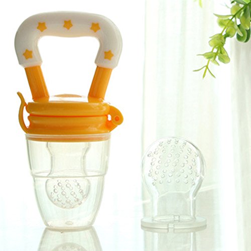 Ochine 乳首 ベビー用品 栄養 野菜 果物 咬み袋 ベービー 赤ちゃん おしゃぶり おいしい 離乳食トレーニング 果汁おしゃぶり/出産祝い 食品級シリコン 3-36月設定 (6-9月, イエロー)