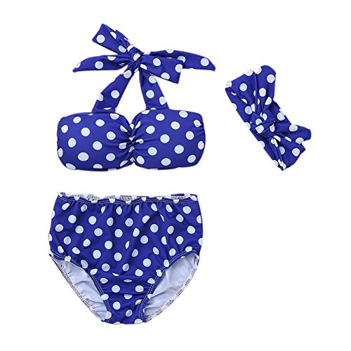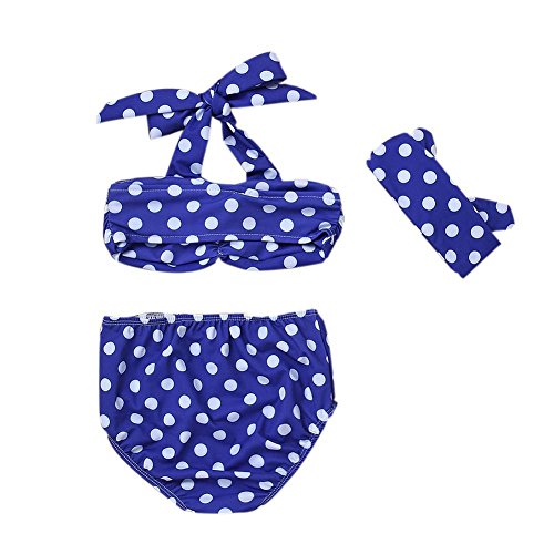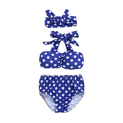 Ochine 子供水着 ガールズ 女の子 水玉水着 ブルー ベービー 水着 ヘッドバンド付き キッズ セパレート 2点セット 可愛いビキニ 0-3歳設定 水泳 温泉に