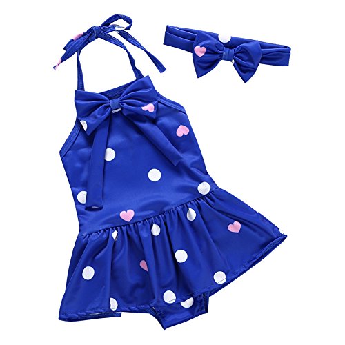 Ochine ベービー 水着 ワンピース ヘアバンド付き ハート柄 リボン 女の子 セパレート ビキニ タンキニ 子供水着 2点セット オシャレ 0-24ヶ月設定 水泳 温泉