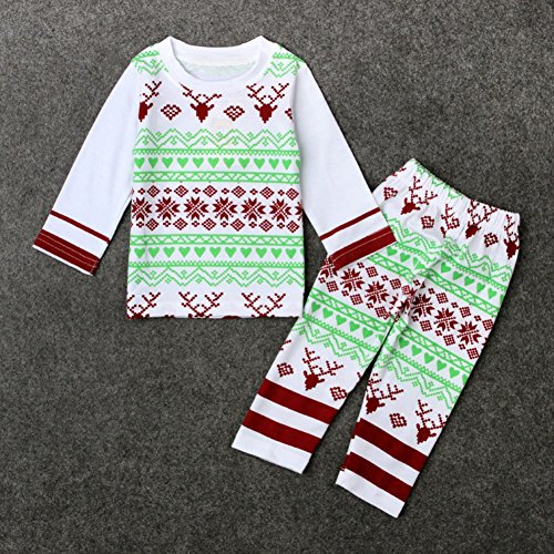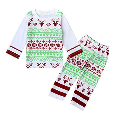 Ochine クリスマス 幼児 新生児 ベビー服 綿 カバーオール 長袖パジャマ 寝間着 エルクプリント 上着&ロングパンツ 上下セット 男女兼用 0-24月設定