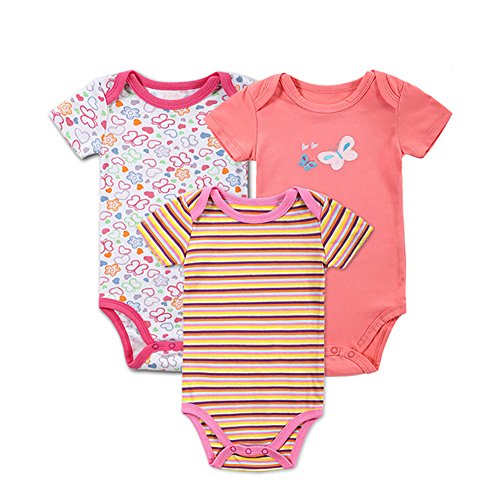 Ochine 夏 幼児 カバーオール 新生児から ロンパース 赤ちゃん 綿100% 半袖 Baby ボディースーツ 3枚セット ベビー服 0~12月設定