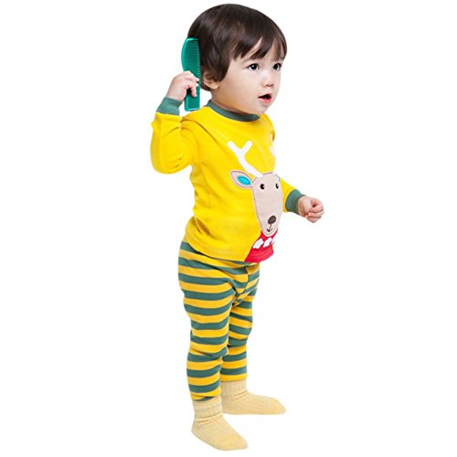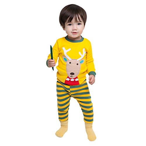 Ochine 男女兼用 子供服 寝間着 ベビー服 二点セット エルク柄トップス+ストライプパンツ コットン製 長袖パジャマ クリスマスプレゼント 1-6歳設定