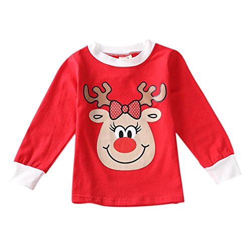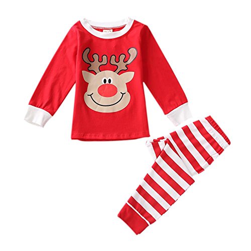Ochine 男女兼用 子供服 寝間着 ベビー服 二点セット エルク柄トップス+ストライプパンツ コットン製 長袖パジャマ クリスマスプレゼント 1-6歳設定