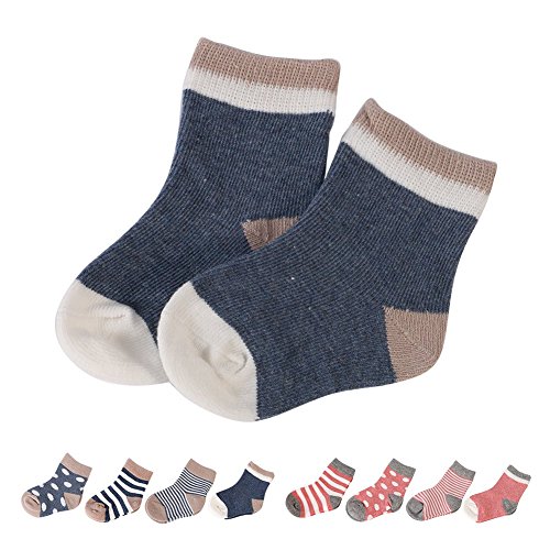 Ochine 【4足セット】 赤ちゃん ベビー 新生児 可愛い ソックス 靴下 柔らかい 靴下 ソックス お祝い 出産 祝い ムール用 外用 ピンク ブルー (M, ブルー)
