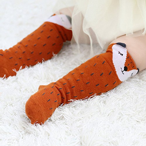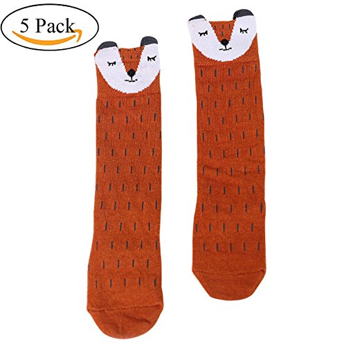 Ochine ベビー用靴下 5足セット ハイソックス 赤ちゃん リス柄 ソックス 可愛い 綿100% 滑り止め加工 くつした おしゃれ 保温 秋冬 出産お祝い