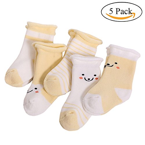 Ochine 5足組 セット ベビー用ソックス 笑顔付き キッズ かわいい靴下 厚め 秋冬 保温 洗い換え7色3サイズ 綿95% 柔軟なくつした 出産お祝い 0~3歳