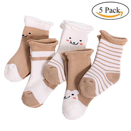 Ochine 5足組 セット ベビー用ソックス 笑顔付き キッズ かわいい靴下 厚め 秋冬 保温 洗い換え7色3サイズ 綿95% 柔軟なくつした 出産お祝い 0~3歳