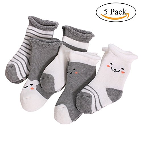 Ochine 5足組 セット ベビー用ソックス 笑顔付き キッズ かわいい靴下 厚め 秋冬 保温 洗い換え7色3サイズ 綿95% 柔軟なくつした 出産お祝い 0~3歳