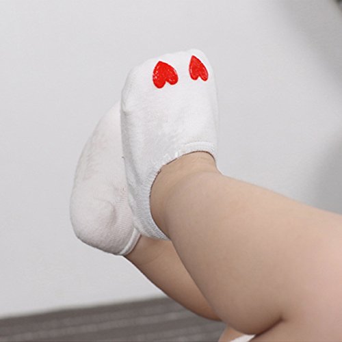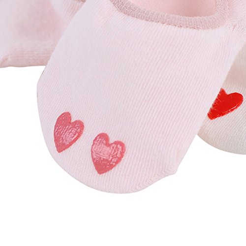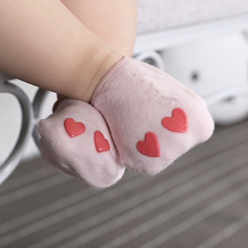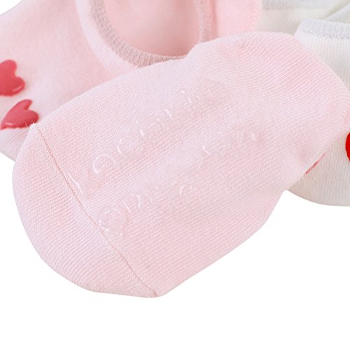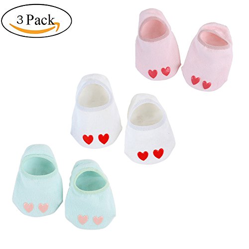 Ochine 滑り止め加工 子供のソックス 幼児用 靴下 赤ちゃん ハートプリント 浅い履き 3足 セット 柔らかい 抗菌防臭 保育園 出産お祝い 誕生日のギフトに
