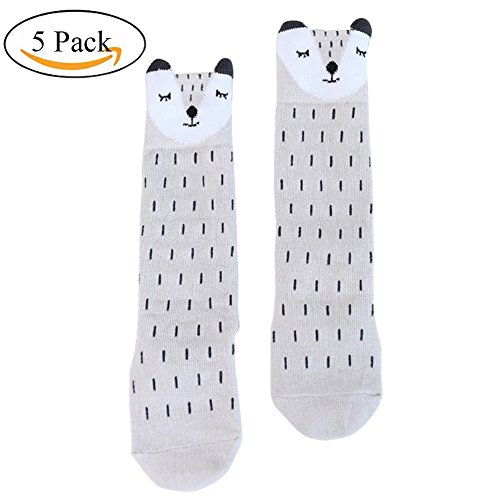 Ochine ベビー用靴下 5足セット ハイソックス 赤ちゃん リス柄 ソックス 可愛い 綿100% 滑り止め加工 くつした おしゃれ 保温 秋冬 出産お祝い