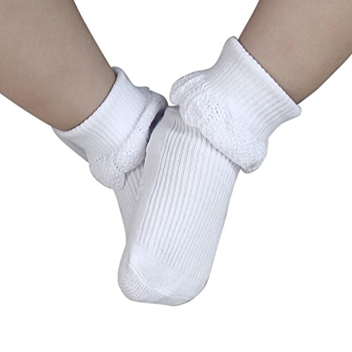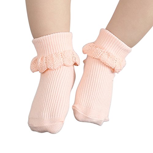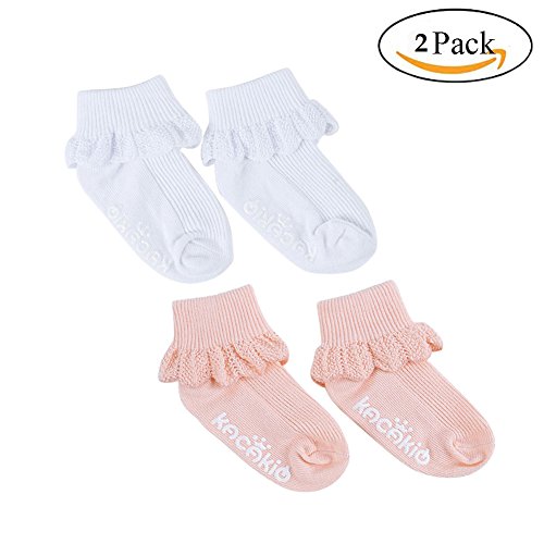 Ochine 幼児用ソックス 2足組 子供の靴下 滑り止め付き ハイソックス つば付き プリンセス風 コットンブランド 女の子 吸汗吸湿 保育園 出産お祝い 0-3歳