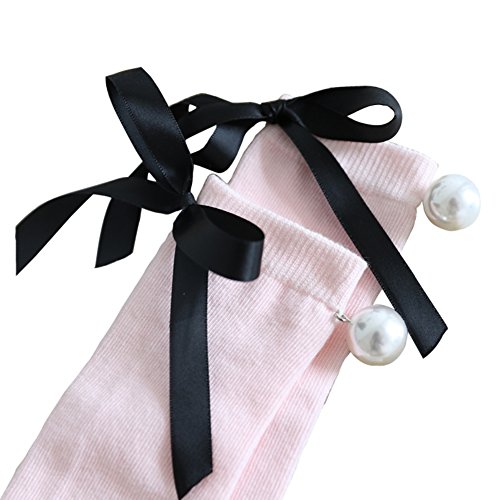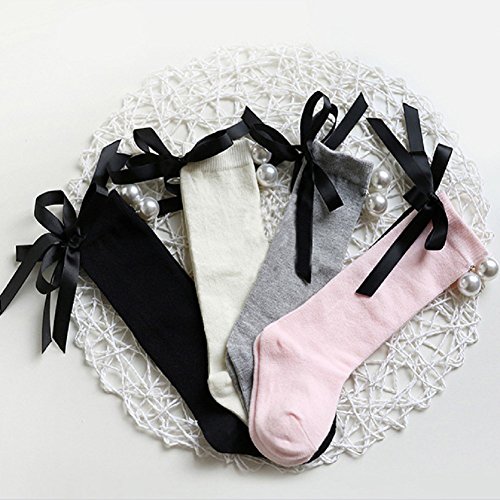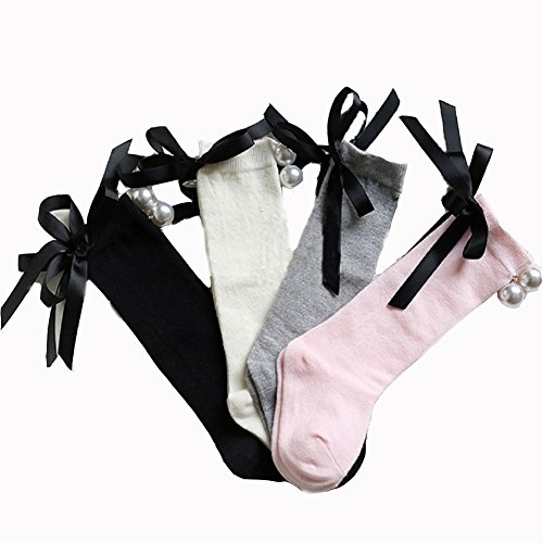 Ochine 4足組 コットン 蝶結び 赤ちゃん 子供 ハイソックス ダンスソックス 無地 パール付き 女の子 通園 通学 靴下 吸汗吸湿 発表会 パーティー 0-6歳