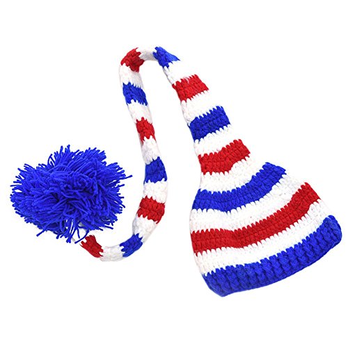 Ochine 新品 ベビー&キッズ 子供 ストライプ ニット帽子 可愛いテール付き 男女兼用 保温防寒 撮影用にも 出産祝い 贈り物 フリーサイズ 6色選択 0-12月設定