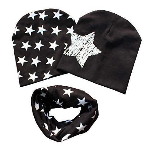Ochine ベビー キッズ 子供 星柄帽子二枚+星柄マフラー コットン 三点セット 超可愛い 男女兼用 保温防寒 撮影用にも 出産祝い 贈り物 フリーサイズ 7色選択