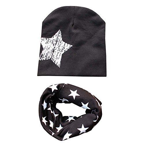 Ochine ベビー キッズ 子供 大きい星柄帽子+小さい星柄マフラー コットン 二点セット 超可愛い 男女兼用 保温防寒 撮影用にも 出産祝い 贈り物 フリーサイズ 7色選択