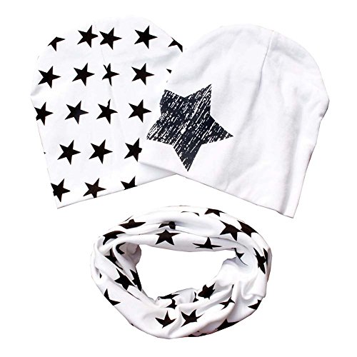 Ochine ベビー キッズ 子供 星柄帽子二枚+星柄マフラー コットン 三点セット 超可愛い 男女兼用 保温防寒 撮影用にも 出産祝い 贈り物 フリーサイズ 7色選択